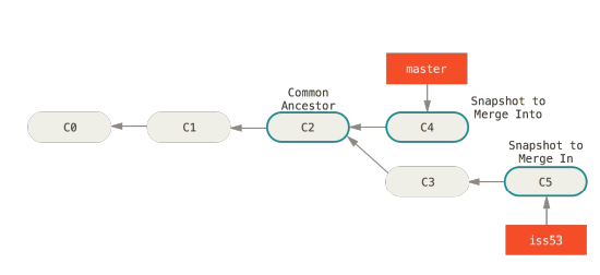 Git은 Merge 하는데 필요한 최적의 공통 조상을 자동으로 찾는다. 이런 기 능도 Git이 다른 버전 관리 시스템보다 나은 점이다. CVS나 Subversion 같은 버 전 관리 시스템은 개발자가 직접 공통 조상을 찾아서 Merge 해야 한다. Git은 다른 시스템보다 Merge가 대단히 쉽다. iss53 브랜치를 master에 Merge 하고 나면 더는 iss53 브랜치가 필요 없다. 다음 명령으로 브랜치를 삭제하고 이슈의 상태를 처리 완료로 표시한다.